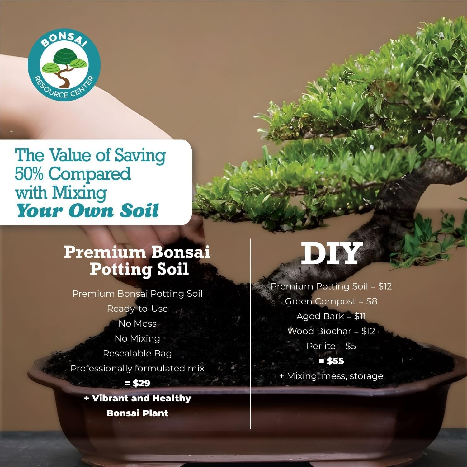 - 6.2 Liters / 0.22 cu. ft. of Premium Bonsai Potting Soil